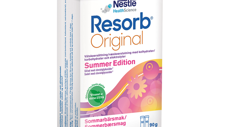 Lagom till sommaren utökar Resorb sin smakfamilj med Resorb Original Sommarbärsmak. Vätskeersättning tillför kroppen vätska och salter snabbt och smidigt under varma sommardagar. Den nya smaken är en limiterad utgåva, en säsongsprodukt som säljs i butik och apotek från och med vecka 15 fram till vecka 40.