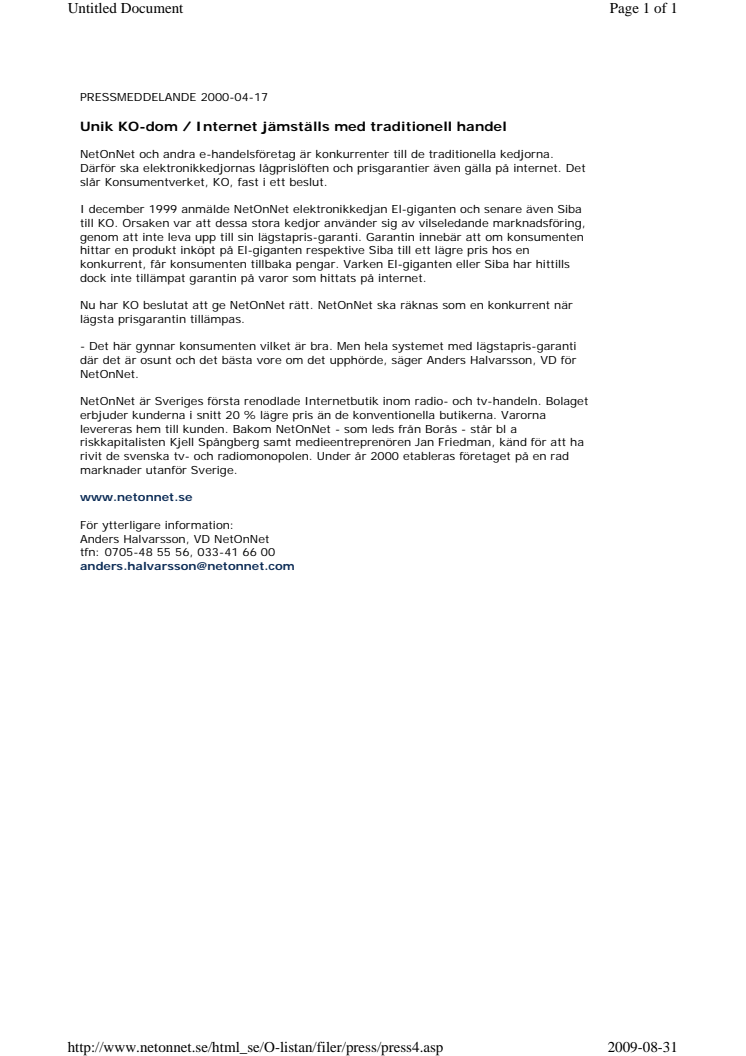 NetOnNet och andra e-handelsföretag är konkurrenter till de traditionella kedjorna.Därför ska elektronikkedjornas lågprislöften och prisgarantier även gälla på internet. Det slår Konsumentverket, KO, fast i ett beslut.