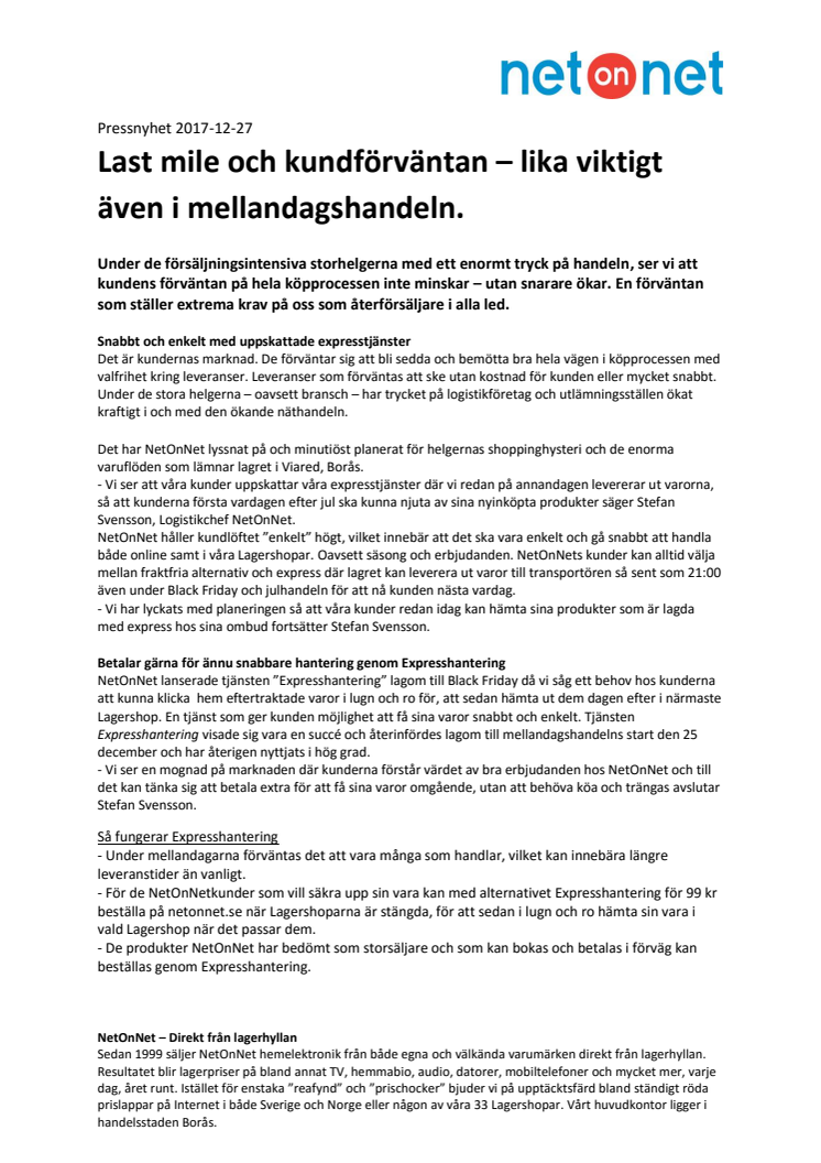 Last mile och kundförväntan – lika viktigt även i mellandagshandeln