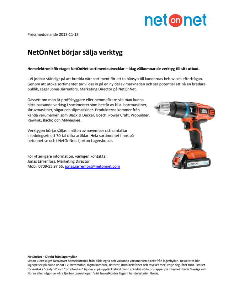 Hemelektronikföretaget NetOnNet sortimentsutvecklar – idag välkomnar de verktyg till sitt utbud