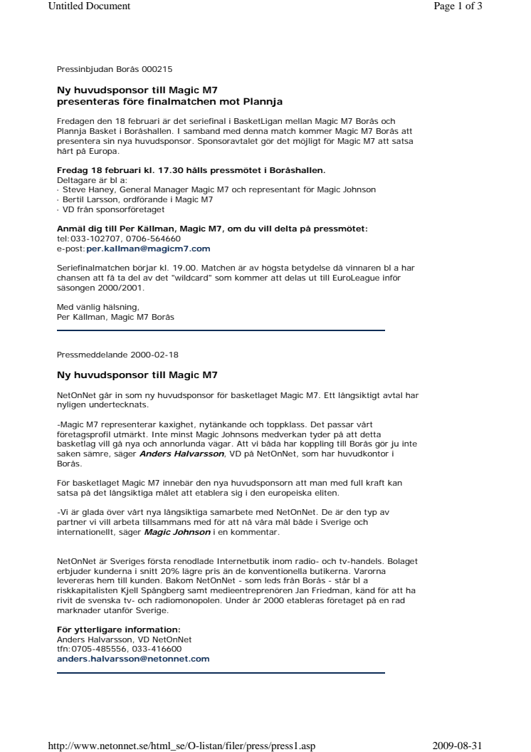 Fredagen den 18 februari är det seriefinal i BasketLigan mellan Magic M7 Borås och Plannja Basket i Boråshallen. I samband med denna match kommer Magic M7 Borås att presentera sin nya huvudsponsor. Sponsoravtalet gör det möjligt för Magic M7 att satsa hårt på Europa.