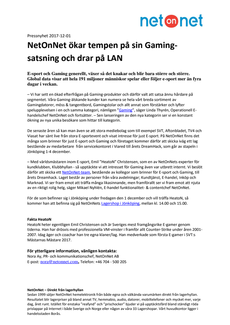 NetOnNet ökar tempen på sin Gaming-satsning och drar på LAN
