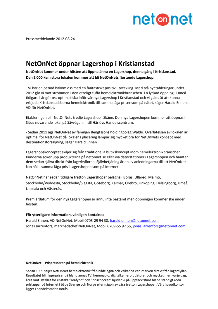 NetOnNet kommer under hösten att öppna ännu en Lagershop, denna gång i Kristianstad.