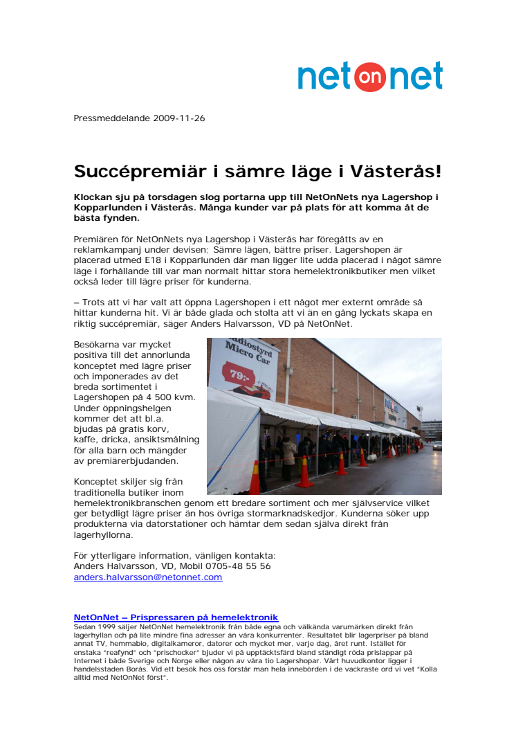 Klockan sju på torsdagen slog portarna upp till NetOnNets nya Lagershop i Kopparlunden i Västerås. Många kunder var på plats för att komma åt de bästa fynden.