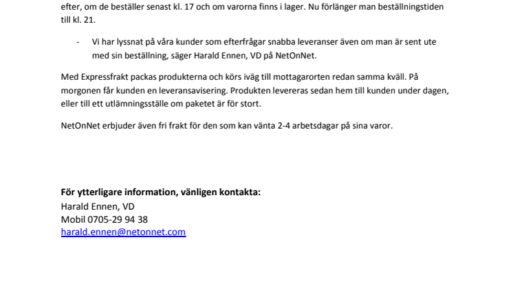Mejl skickat till __email__. Klicka på länken i mejlet för att följa NetOnNet AB.