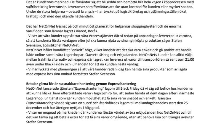 • Last mile och kundförväntan – lika viktigt även i mellandagshandeln