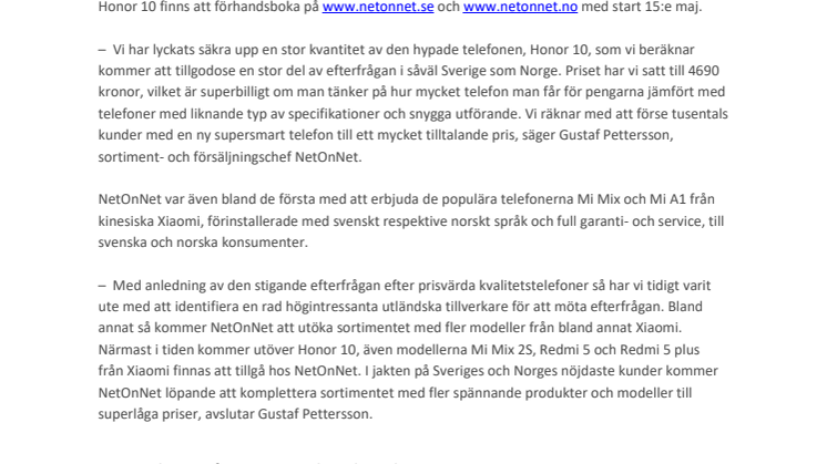 • NetOnNet först ut med att sälja Honor 10 i Sverige