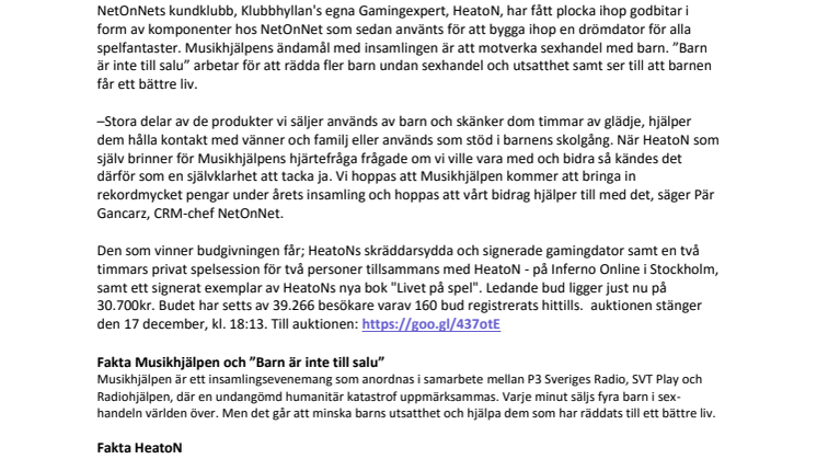 • NetOnNet och HeatoN gör gemensam sak och stödjer insamlingseventet Musikhjälpen