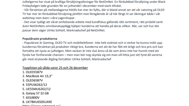 • Gaming och OLED TV när kunderna får välja under mellandagarna hos NetOnNet.