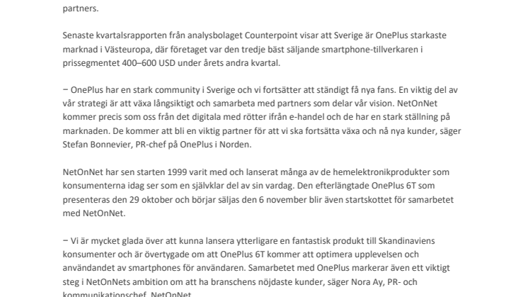 • NetOnNet blir ny återförsäljare av OnePlus