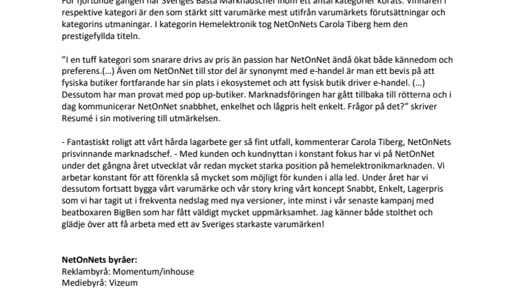 • NetOnNet har Sveriges Bästa Marknadschef 2019 inom hemelektronik