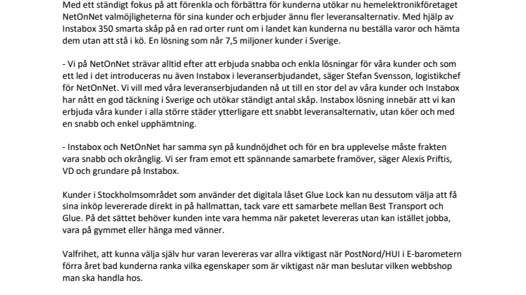 • NetOnNet breddar leveranserbjudandet med Instabox och InHome-leverans