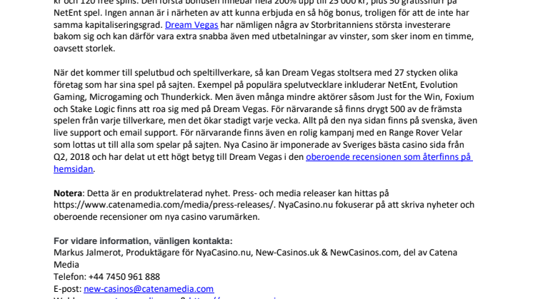 Detta är en produktrelaterad nyhet. Press- och media releaser kan hittas på https://www.catenamedia.com/media/press-releases/. NyaCasino.nu fokuserar på att skriva nyheter och oberoende recensioner om nya casino varumärken.