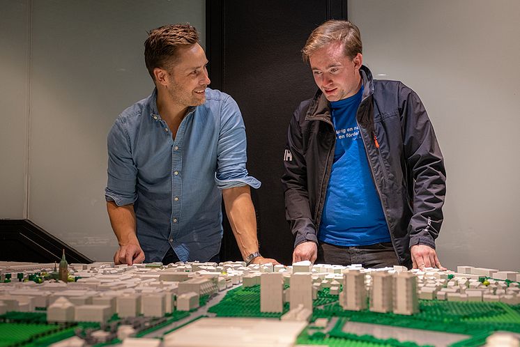 Rickard och David bygger Skövde i lego