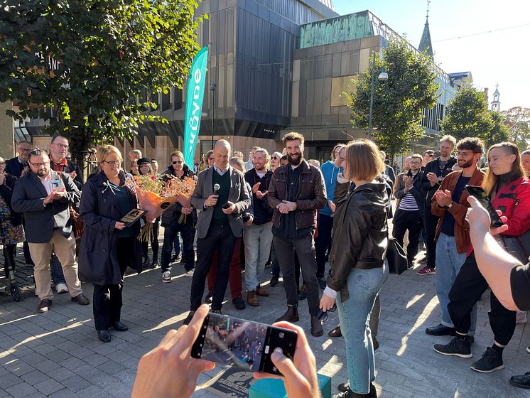- Vi är jätteglada att vi nu får till den här manifestationen av dataspel i centrala Skövde så att både Skövdebor och besökare rent fysiskt kan se de framgångar som Skövdes dataspelsföretag har haft genom åren, säger Tau Petersson, destinationsutvecklare för dataspel på Next Skövde. Hon fortsätter: Vi hoppas självklart på ytterligare framgångar och att vi kommer att få utöka med fler bronsplattor framöver.