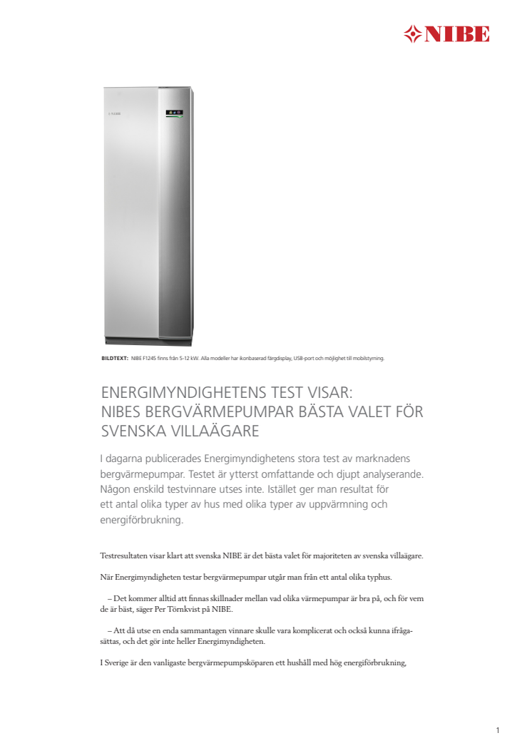 Energimyndighetens test visar: NIBEs bergvärmepumpar bästa valet för svenska villaägare