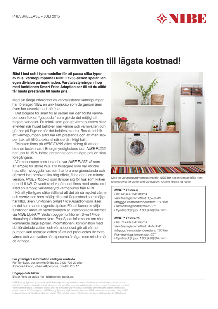 Bäst i test och i fyra modeller för att passa olika typer av hus. Värmepumparna i NIBE F1255-serien spelar i en egen division på marknaden. Varvtalsstyrningen ihop med funktionen Smart Price Adaption ser till att du alltid får bästa prestanda till bästa pris.