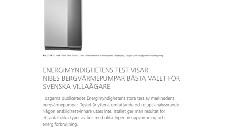 Energimyndighetens test visar: NIBEs bergvärmepumpar bästa valet för svenska villaägare