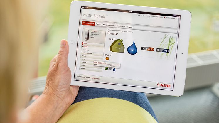 För att ytterligare säkerställa så att det blir så mycket värme och varmvatten som möjligt till en så låg kostnad som möjligt har NIBE även funktionen Smart Price Adaption som läser av det kommande dygnets elpriser. För att kunna utnyttja funktionen krävs att värmepumpen är uppkopplad till internet via NIBE Uplink™. Sedan bygger funktionen Smart Price Adaption på elbörsen Nord-Pool Spots information om nästkommande dags elpriser. Informationen i kombination med det förväntade vatten- och värmebehovet gör att värmepumpen kan anpassa driften så att det produceras lite extra värme och varmvatten när elpriserna är låga, men mindre när de är höga.