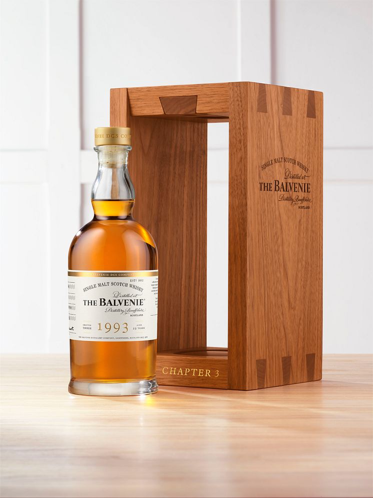 Balvenies nya samling presenteras i en exklusiv skräddarsydd förpackning av körsbärsträ med mässingsram, handgjord av den skotska hantverkaren Sam Chinnery. Till samlingen medföljer även en bok skriven av Dr. Samuel J. Simmons, Balvenies globala ambassadör.