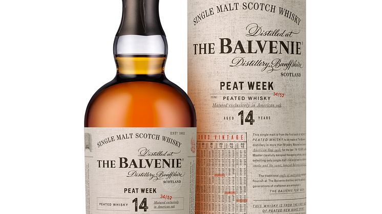 Nu lanseras The Balvenie Peat Week Aged 14 Years (2003 Vintage) som en uppföljare till fjolårets premiärsläpp (2002 Vintage). Whiskyn destilleras under sju dagar varje år och årgångsbetecknas. Nu har årgång 2003 kommit till Sverige.