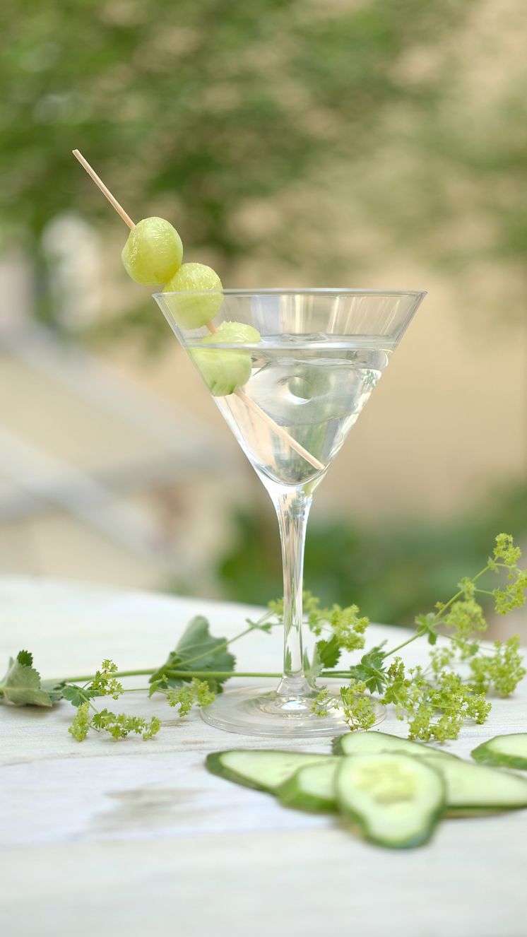 Gurkkulor: Likt små glasskulor kan det vara festligt med gurkkulor till sommarens drycker. Ta fram ett kuljärn och gröp ur kulor från gurkan. Har du inget sådant verktyg i hemmet, går det även bra att använda sig av en tesked. Sätt sedan fast kulorna på en drinkpinne och doppa ner den i en ”Hendricks Martini”.