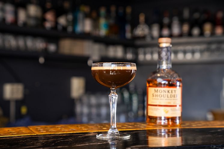 En kraftfull liten rackare som kombinerar Monkey Shoulders djup med sötma från Likör 43, nybryggd espresso och ett par stänk apelsinbitter som adderar den där oväntade, vuxna touchen. Tänk dessert – med skärpa.
