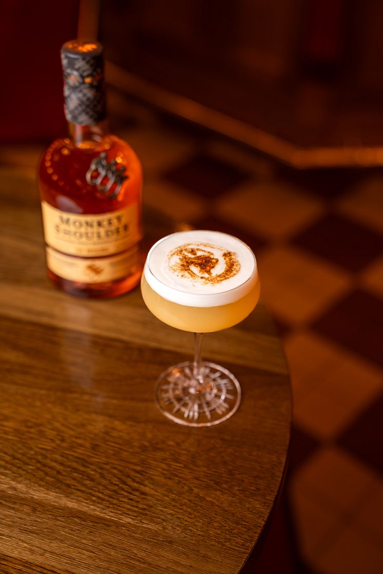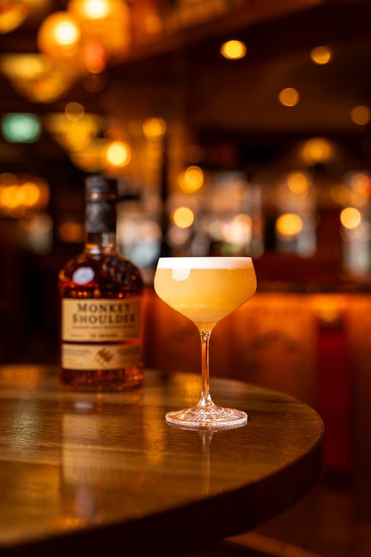 En frisk och fluffig cocktail där Monkey Shoulder får sällskap av päronlikör, apelsinlikör och citron med söt maräng på toppen som bränns av för en karamelliserad finish. Det är vårkänsla i varje lager.