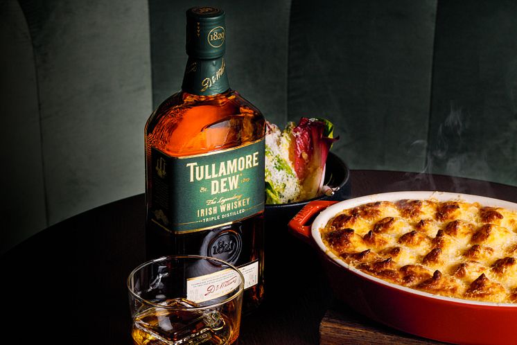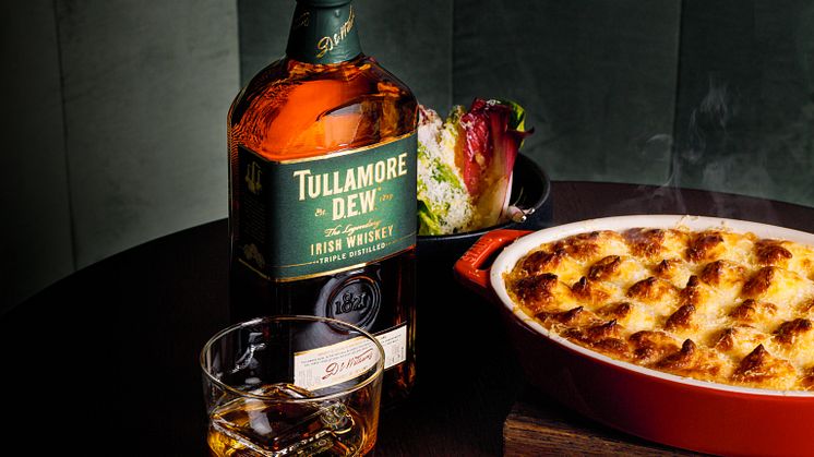 - Här blir tillbehören centrala komponenter. Whiskey-dressingen till salladen är en riktig hit – den tillför både syra, sötma och ett härligt sting. Ringla den över salladen eller varför inte över hela skapelsen. Och som kronan på verket dricker vi självklart en kall bärs och en Tullamore D.E.W. till, avslutar Mattias Dahlström.