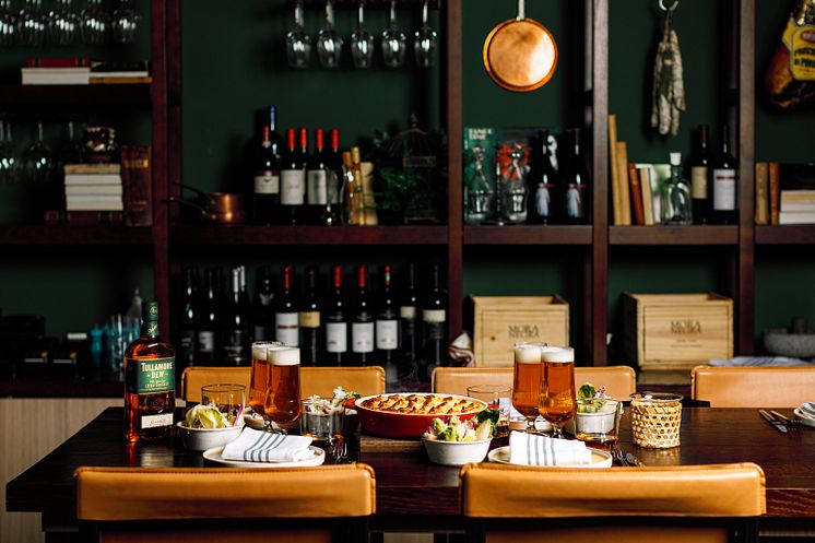 Även tillbehören blir viktiga komponenter för att smakupplevelsen ska bli komplett. En krispig sallad med fräscha smaker och olika texturer binder ihop rätten. Det, tillsammans med en klassisk irländsk dryckeskombination, en så kallad D.E.W. & A Brew – dvs en whiskey tillsammans med öl – gör att smakupplevelsen blir fullständig.