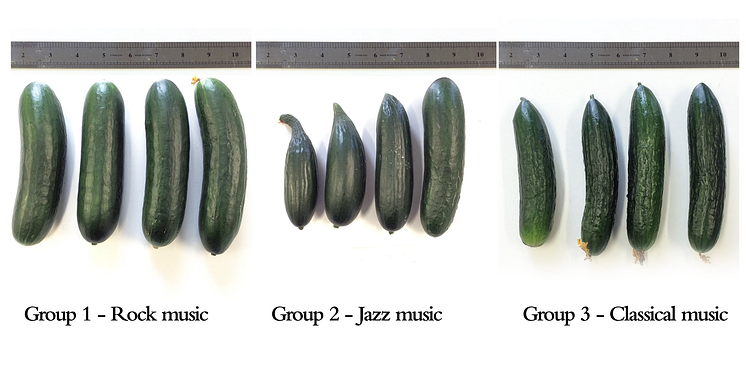 I studien utsattes tre gurkgrupper för tre olika musikgenrer på hög volym: klassisk, jazz och rock. En fjärde grupp gurkor fick växa i tystnad. Resultatet visar att gurkorna som lyssnade på jazz blev fult böjda och fick mycket spetsiga kanter, medan de som lyssnade på klassisk musik som Beethoven och Bach fick ett mycket lysande friskt och glänsande skal. Allra bäst mådde gurkorna som exponerades för rock-musik; de blev större, godare, mer cylindriska till formen och med ett jämnt mörkgrönt skal.