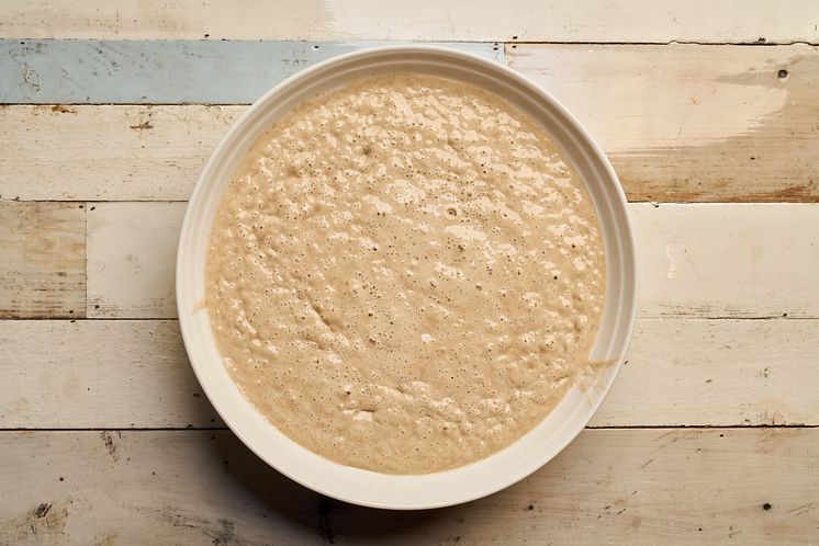Degen: Häll salt i poolishen och vispa ordentligt tills allt salt har lösts upp. Sikta ner mjölet och blanda ihop till en deg, för hand eller med hjälp av en slickepott.