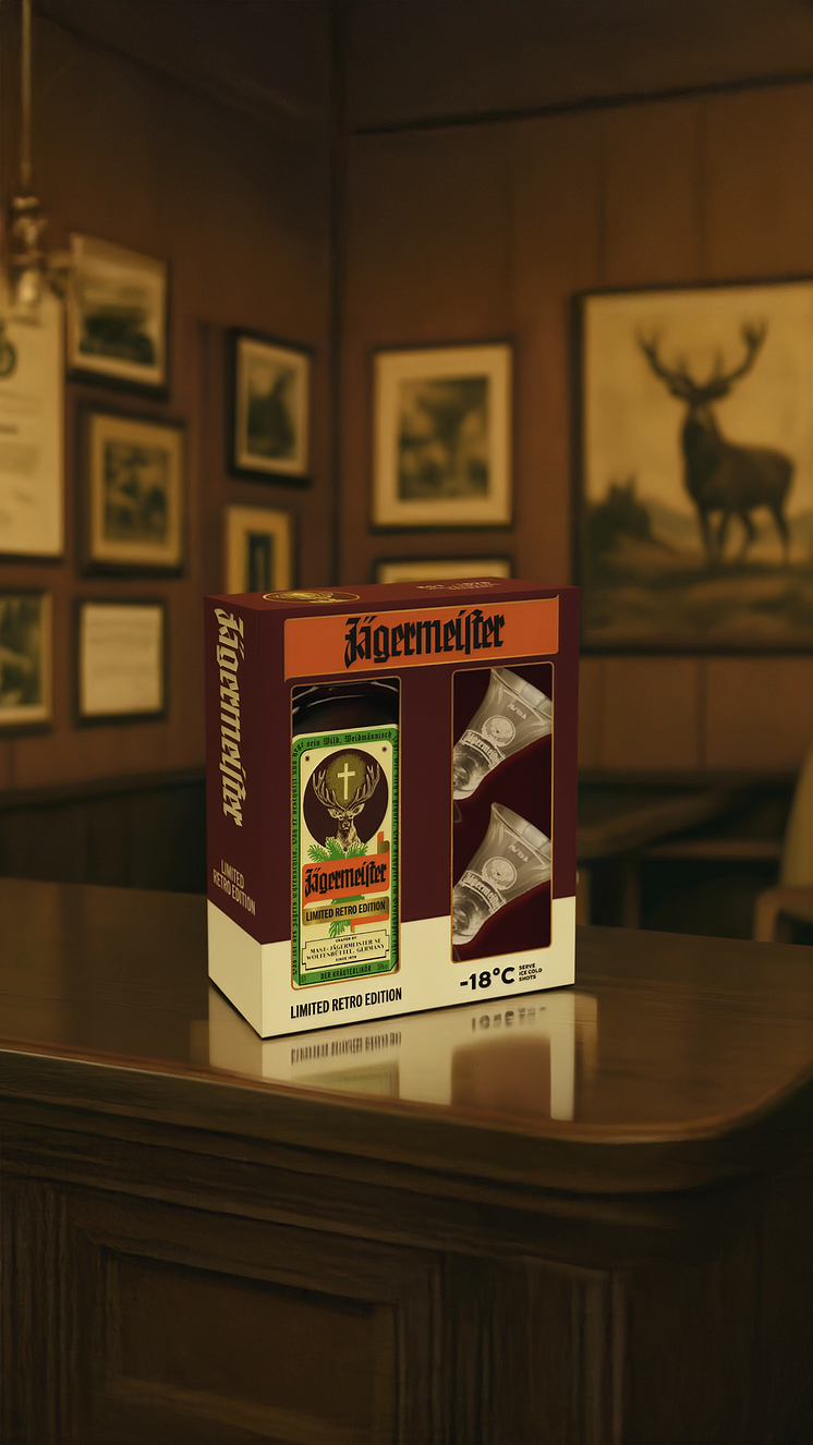 Jägermeister Retro Edition – en hyllning till rötterna – Som kronan på verket lanseras även en begränsad upplaga av Jägermeister Retro Edition. Retroflaskan hyllar Jägermeisters ursprung och originaldesign med vit glasdesign, klassiska etiketter och historiska detaljer – en blinkning till varumärkets första år. Flaskan lanseras på Systembolaget den 6 oktober 2025. Jägermeister Retro Edition: Art.nr. Systembolaget: 42676