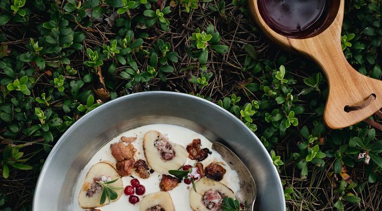 – Jag gillar att upptäcka naturen via mat. Min version av den klassiska kroppkakan har fått en twist och passar särskilt bra att laga tillsammans med vänner på ett stormkök ute i naturen. Den lättlagade rätten, med Jägermeister-doftande fläsk, blir extra god att samlas kring efter att ha plockat drinkingredienser i skogen. Det är enkelt och gott, säger Malin Fränberg, matkreatör, kock och fotograf.