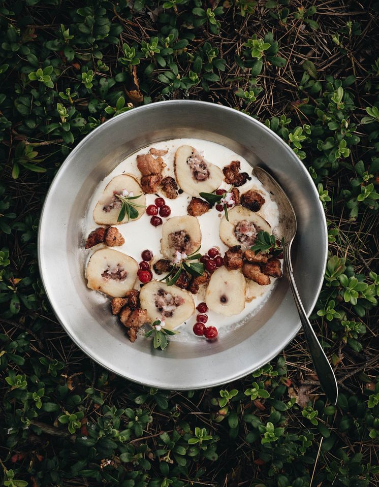 7. Ta med dig dina kroppkakor ut i naturen och tillaga dem enligt instruktioner ovan med gräddmjölk, fläsk och en skvätt Jägermeister.