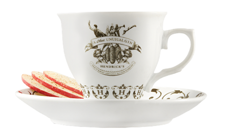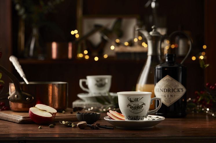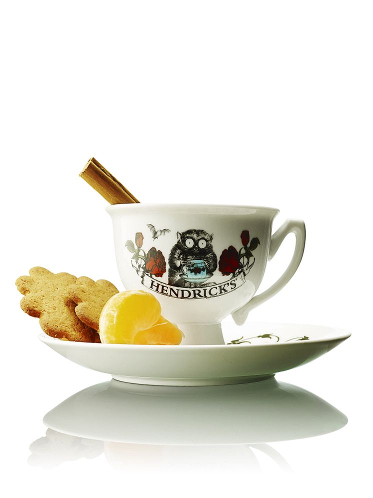 - Värm Hendrick’s Gin, sockerlag och bitters försiktigt i en gryta. Addera det kokande vattnet.