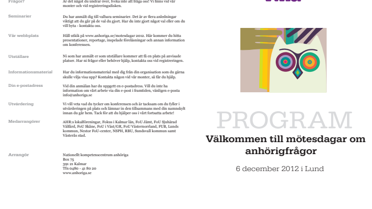 Under mötesdagen deltar bland andra Socialstyrelsen, Anhörigas Riksförbund och Nationell Samverkan för Psykisk Hälsa. Under mötesdagen hålls seminarier, föreläsningar och workshops inom områdena – anhöriga till äldre, anhöriga till personer med psykisk ohälsa, barn som anhöriga, samt anhöriga till barn och ungdomar med flerfunktionsnedsättning.