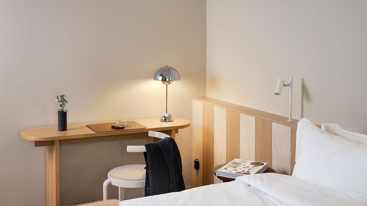 Hotellets 215 rum är designade för att skapa en känsla av lugn, rymd och taktil kvalitet. Platsbyggda möbler i massiva träslag, generösa ytor och materialval som speglar nordisk enkelhet genomsyrar varje rum. Den arkitektoniska helheten är både modern och tidlös, där det gamla möter det nya i subtil balans. Vissa rum har utsikt över parken, andra över vattnet, men alla är tänkta att vara en personlig fristad mitt i naturen och samtidigt nära stadens puls.