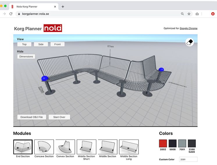 Korg planner, planeringsverktyg för utbyggnad av Korg möbelsystem. Design Thomas Bernstrand.
