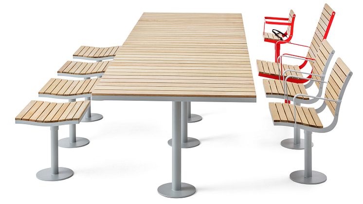 I vår monter presenterar vi utemöler för framtidens behov såsom Smart Solar Bench, design Infra Marks - en interaktiv bänk anpassad efter dagens digitala behov, som genom en sits av solpanel genererar både trådlös laddning liksom WiFi-uppkoppling. Parco konferensgrupp ur Parco möbelgrupp, design Broberg & Ridderstråle, är utemöbler för the Outdoor Office och flexibla arbetsplatser. I samband med mässan lanserar vi även ett praktiskt litet schackbord för utomhusbruk och sociala ytor i staden, design Nola.
