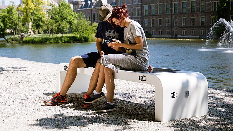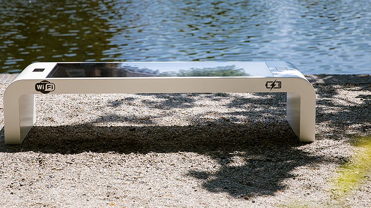 Smart Solar Bench, design Infra Marks, är en interaktiv bänk med sits av solpanel som genererar både trådlös laddning via 2 spots i sittytan och via 4 USB-uttag. Bänken möjliggör också WiFi-uppkoppling via en 4G-router med täckning 10-20 m runt bänken. Panelen har dessutom LED belysning i olika färger.