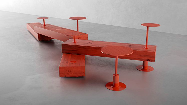Sittmöbeln, formgiven av Liljewall genom arkitekt Jonas Hermansson, går i linje med Kunskapshusets övriga arkitektur med inspiration från den norrländska skogen och nerfallna furor. Resultatet har blivit en stadig bänk i limträ med tillhörande bord på stålfötter, färgsatt i samma djupröda kulör som skolans fasad. Möbeln har en genomgående färgsättning, i samklang med skolans övriga material, och kan fungera som solitär eller sammankopplas till långa, horisontella delar. Sittmöbeln går vidare att snurra och förändras i sin komposition utefter platsens förutsättningar. Bänkarna kommer även finnas med inbyggd belysning, som på ett effektfullt sätt kan lysa upp dess delar. Möbeln kommer under året att tas upp i produktion för att ingå i Nolas ordinarie sortiment.