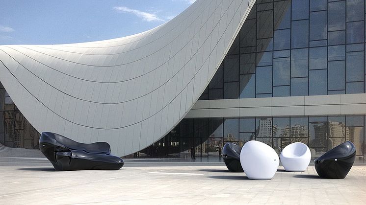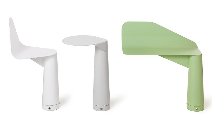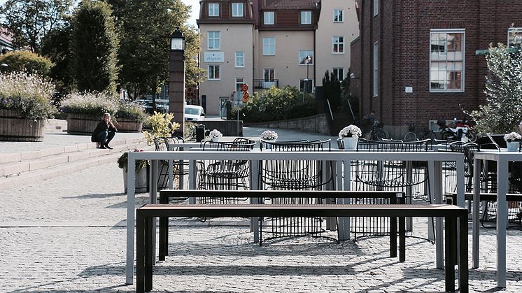 Kaskad stolar av Björn Dahlström och Areal bord och bänkar, design Broberg & Ridderstråle syns nu utanför Open Lab i Stockholm, centrum för universitet och forskning.