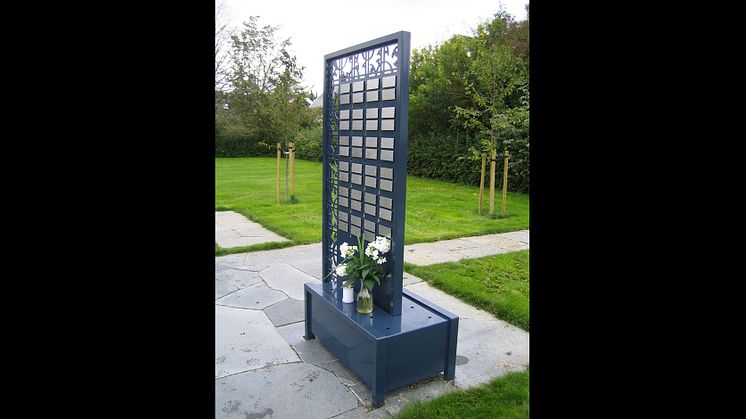 Memory är en ny dekorativ minnestavla för användning vid minneslundar, med plats för 96 stycken namnplaketter i rostfritt stål per tavla. Den låga delen inunder fungerar som yta för exempelvis blomster eller ljus. Design, Løvetanna Landskap