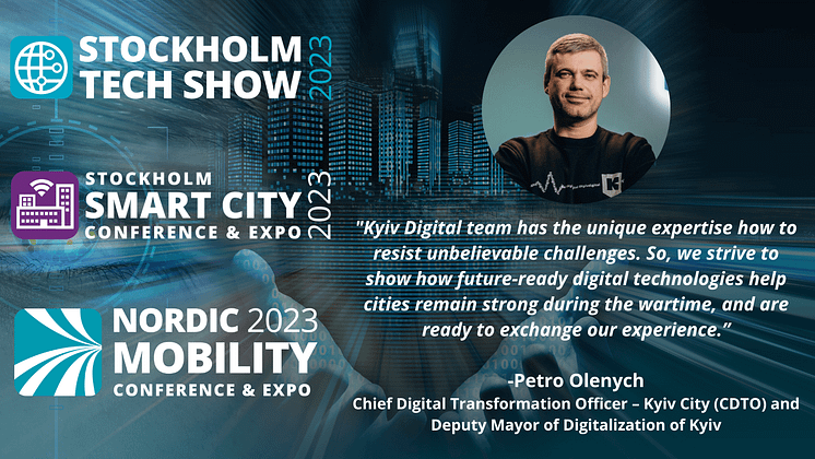 Ukraina och Keiv Stad är några av alla de internationella deltagarna från politiken, näringslivet och offentlig sektor som under två fullspäckade dagar möts under ett tak för delta på konferensen i Stockholm. I Kiev hade man sakta börjat återhämta sig från Covid-19, när staden plötsligt stod inför en ännu större kris: en kamp för överlevnad. Future Ready City är en av de många ämnen som kommer att belysas på mässan och konferensen. Petro Olenych, Chief Digital Transformation Officer – Kyiv City (CDTO) and Deputy Mayor of Digitalization of Kyiv kommer att dela med sig av Kievs erfarenheter och beskriva hur framtidens digitala teknik kan hjälpa städer att förbli motståndskraftiga även inför de tuffaste utmaningarna under ett krig.