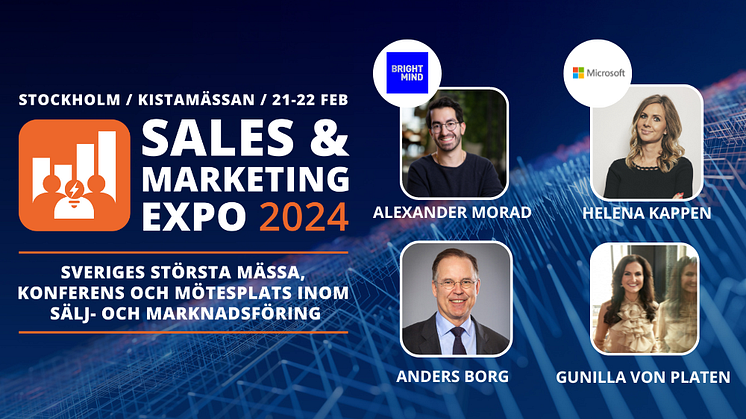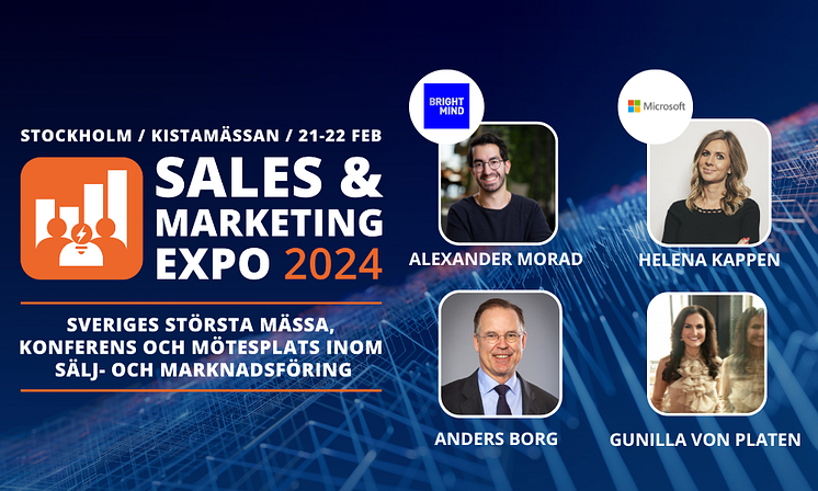 Sälj- och marknadsavdelningar står inför en rad utmaningar i en föränderlig och snabbrörlig värld. Företag måste ha konstant uppmärksamhet på utveckling, digitalisering och automatisering i en tid där nya trender och ny teknik är avgörande för framgång. På Sales & Marketing Expo 21-22 februari på Kistamässan i Stockholm lanseras ett nytänkande konferensprogram med en stark talaruppställning som visar vägen till morgondagens sälj- och marknadsföringsstrategier.
