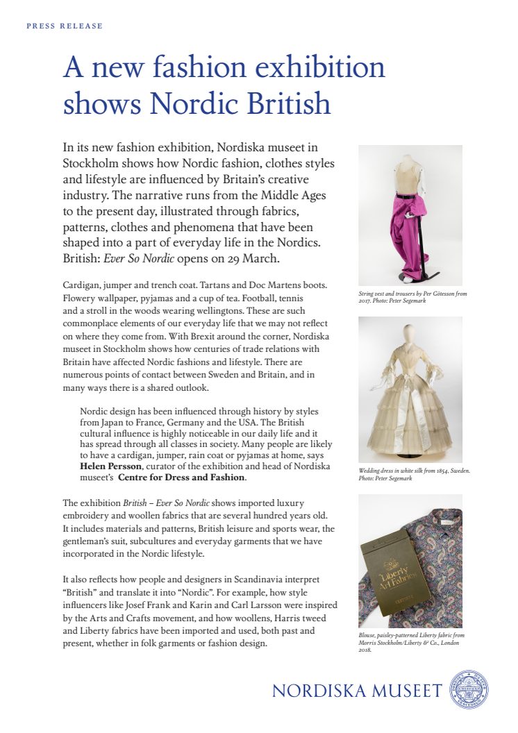 Press kit: British – ever so Nordic, fashion exhibition at Nordiska museet, Stockholm