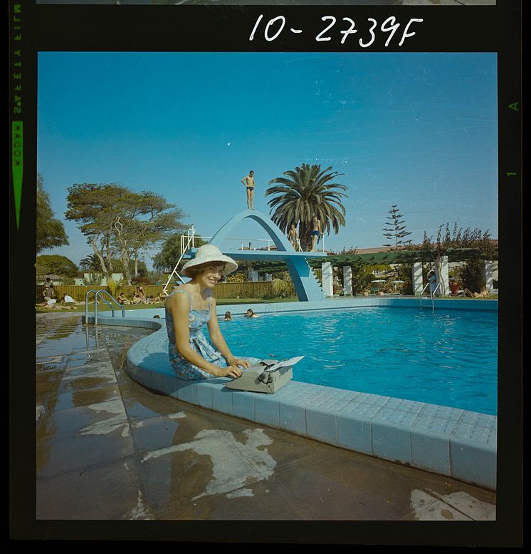 Kvinna med skrivmaskin från Facit AB, Peru, 1964.
