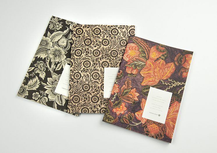 Berchska samlingen, anteckningsböcker ur Nordiska museets serie med reproducerade mönster från kattuntryck från 1700-talet ur samlingarna. Foto: Peter Segemark, Nordiska museet