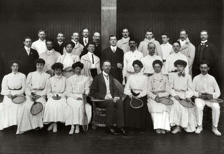 Kungliga Tennisklubben i Stockholm, Gustav V i mitten. NMA.0034272 Fotograf okänd, Nordiska museets arkiv